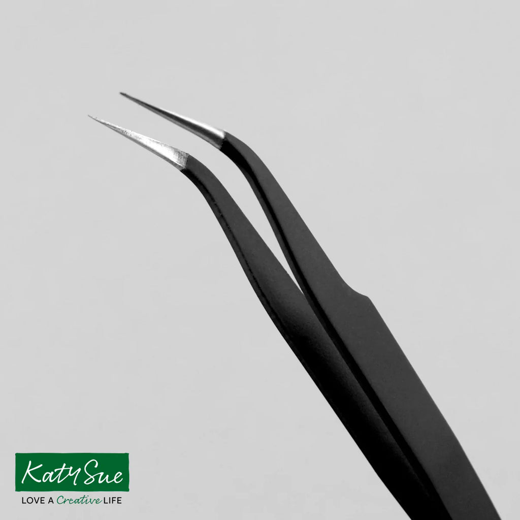 • Metal tweezers with coated handle and angled tip