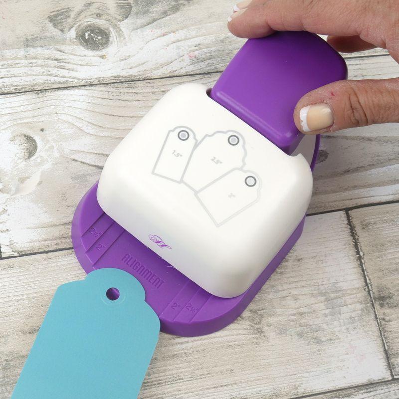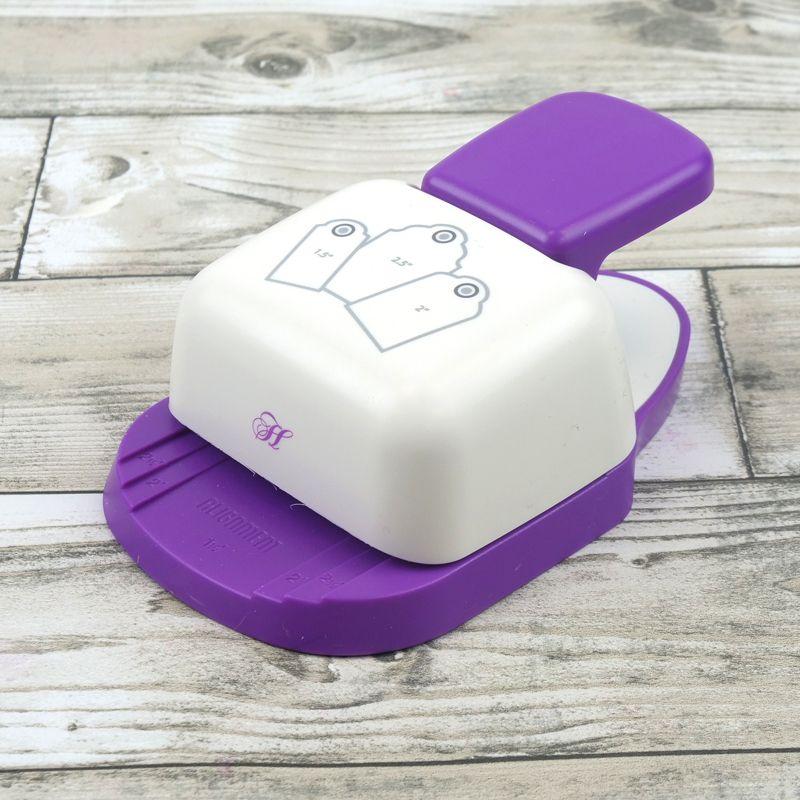 Able to cut three different sizes of tags; 1.5, 2 and 2.5 inches, this handy tool is a fantastic addition to your craft stash.  Easy and simple, it can be used for a huge variety of designs with its ability to easily punch out large fancy edge tags for beautiful designs.
